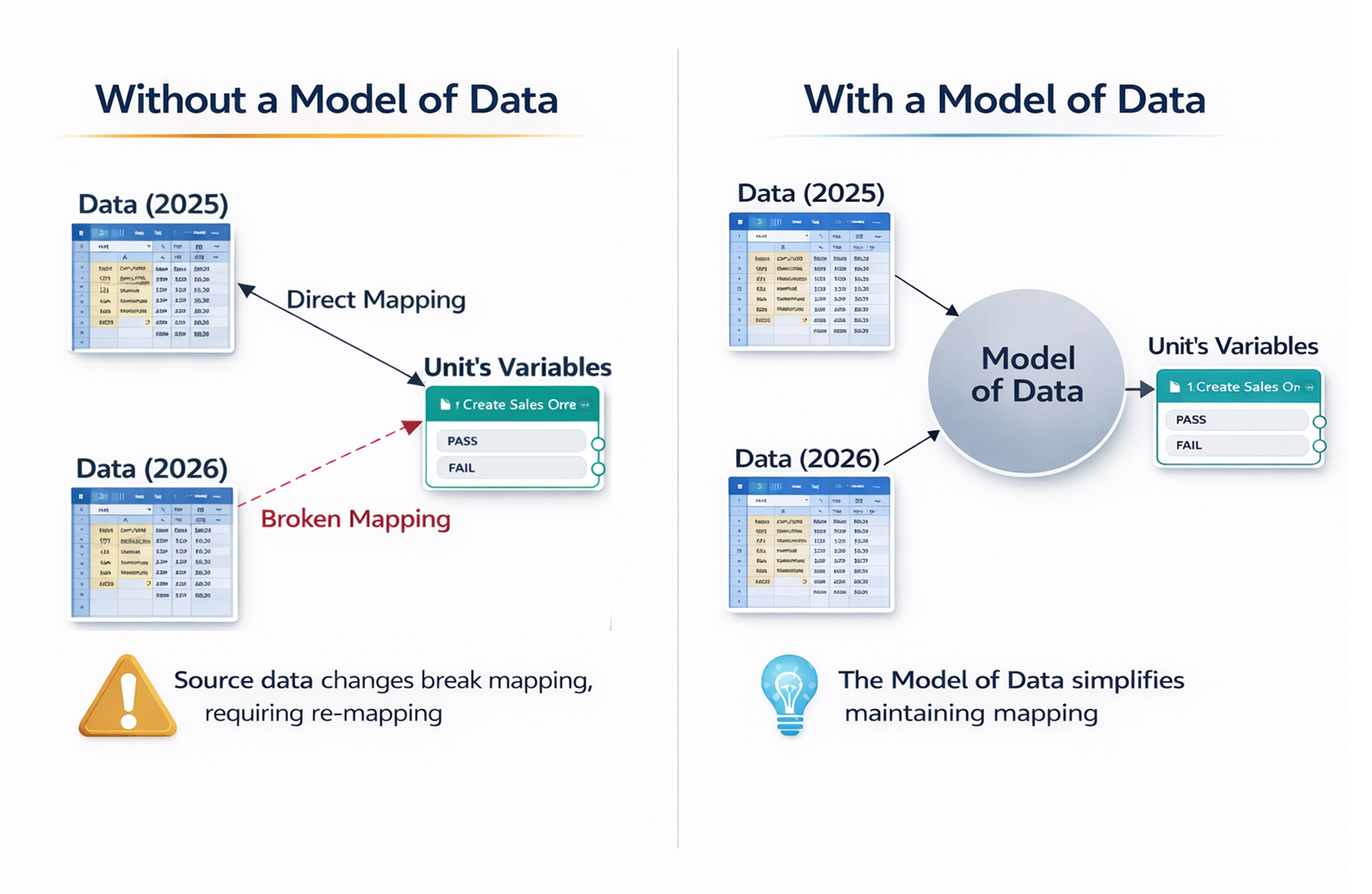 Using a Data Model keeps automation flexible, because you can change the test data without modifying the Unit itself.